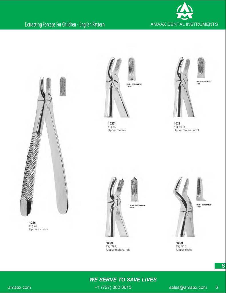 WITH SERRATED TIPS 1027 Fig 39 Upper molars WITH SERRATED TIPS 1026 Fig 37 Upper incisors 1029 Fig 39 L Upper molars, left WITH SERRATED TIPS 1028 Fig 39 R Upper molars, right WITH SERRATED TIPS 1030 Fig 515 Upper roots
