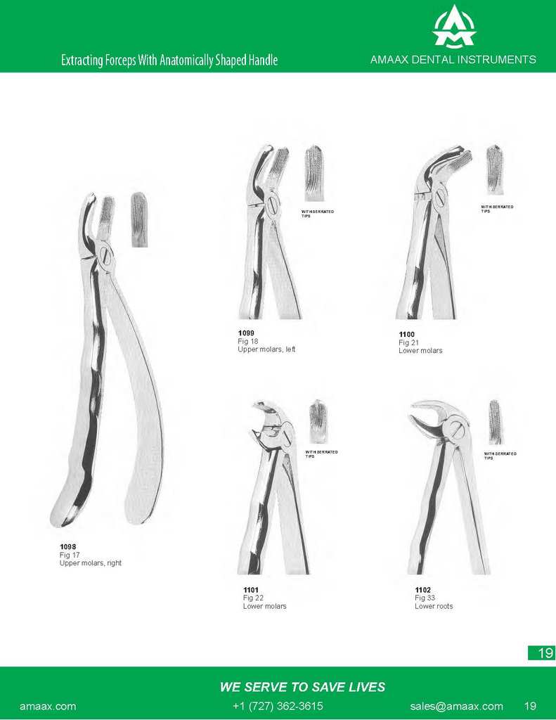 WITH SERRATED WITH SERRATED TIPS TIPS 1099 1100 Fig 18 Fig 21Upper molars, left Lower molars WITH SERRATED WITH SERRATED TIPS TIPS 1098 Fig 17 Upper molars, right 1101 1102 Fig 22 Fig 33 Lower molars Lower roots