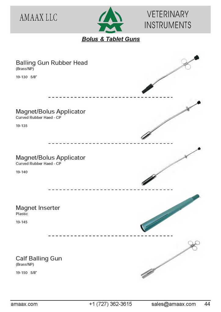 Bolus & Tablet Guns Balling Gun Rubber Head (Brass/NP) 19-130 5/8? Magnet/Bolus Applicator Curved Rubber Haed -CP 19-135 Magnet/Bolus Applicator Curved Rubber Haed -CP 19-140 Magnet Inserter Plastic 19-145 Calf Balling Gun (Brass/NP) 19-150 5/8?