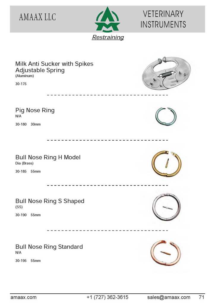 Restraining Milk Anti Sucker with Spikes Adjustable Spring (Aluminum) 30-175 Pig Nose Ring N/A 30-180 30mm Bull Nose Ring H Model Dia (Brass) 30-185 55mm Bull Nose Ring S Shaped (SS) 30-190 55mm Bull Nose Ring Standard N/A 30-195 55mm