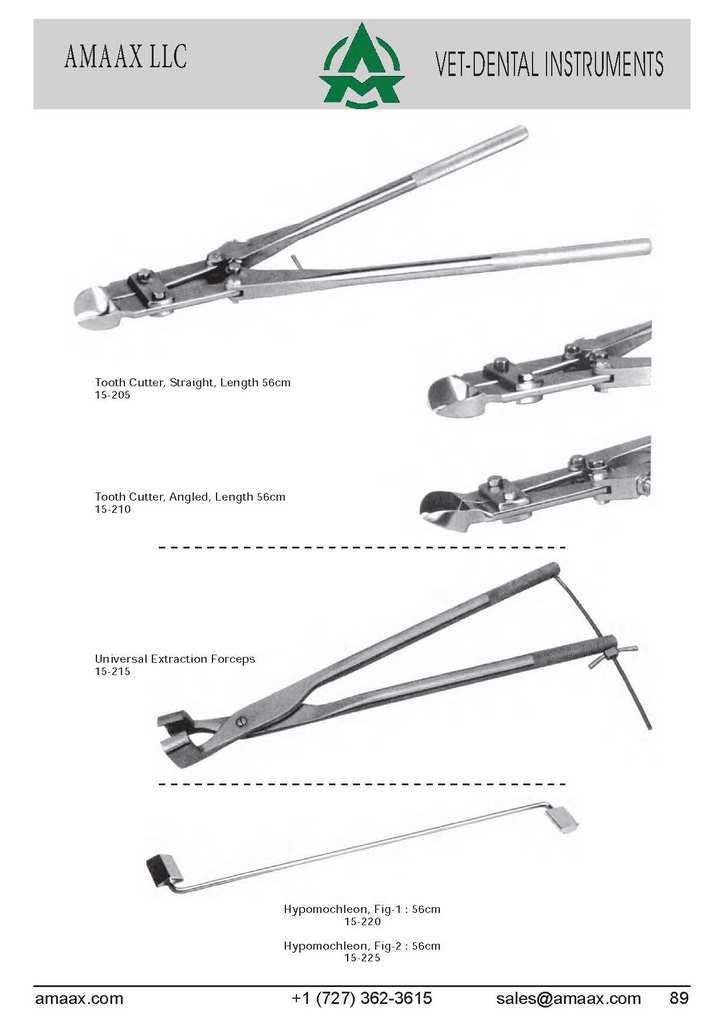 Tooth cutter straight length 56cm 15-205 Tooth cutter angled length 56cm 15-210 Universal extraction forceps 15-215 Hypomochleon, Fig-1 : 56cm 15-220 Hypomochleon, Fig-2 : 56cm 15-225