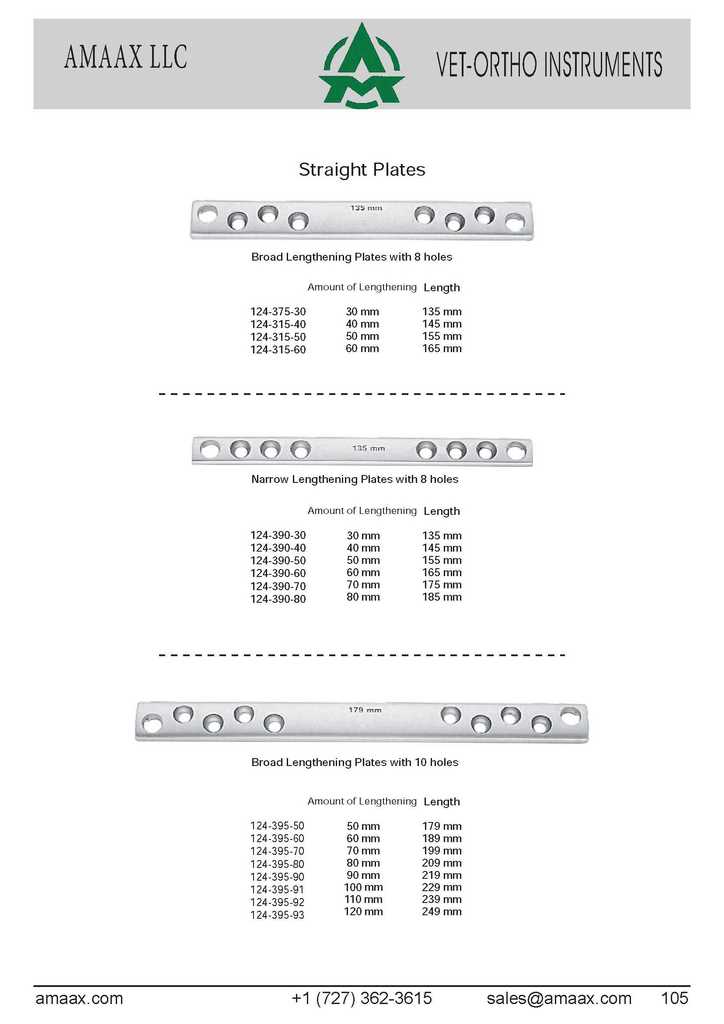 Straight Plates Broad Lengthening Plates with 8 holes Amount of Lengthening Length 124-375-30 30 mm 135 mm 124-315-40 40 mm 145 mm 124-315-50 50 mm 155 mm 124-315-60 60 mm 165 mm Narrow Lengthening Plates with 8 holes Amount of Lengthening Length 124-390-30 30 mm 135 mm 124-390-40 40 mm 145 mm 124-390-50 50 mm 155 mm 124-390-60 60 mm 165 mm 124-390-70 70 mm 175 mm 124-390-80 80 mm 185 mm Broad Lengthening Plates with 10 holes Amount of Lengthening Length 124-395-50 50 mm 179 mm 124-395-60 60 mm 189 mm 124-395-70 70 mm 199 mm 124-395-80 80 mm 209 mm 124-395-90 90 mm 219 mm 124-395-91 100 mm 229 mm 124-395-92 110 mm 239 mm 124-395-93 120 mm 249 mm
