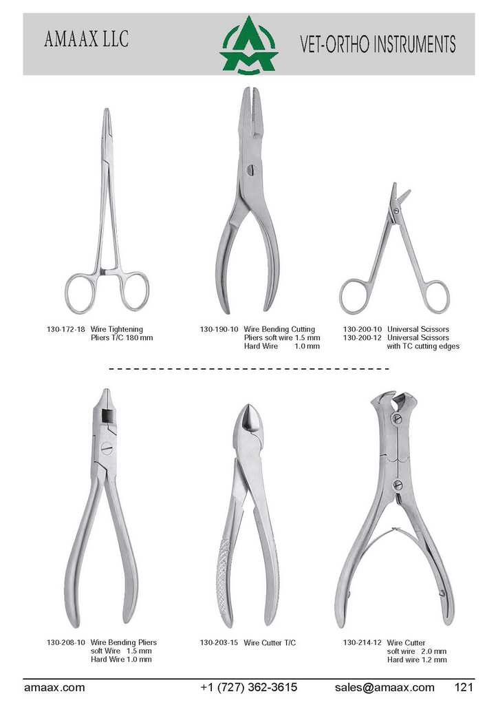 130-172-18 Wire Tightening 130-190-10 Wire Bending Cutting 130-200-10 Universal Scissors Pliers T/C 180 mm Pliers soft wire 1.5 mm 130-200-12 Universal Scissors Hard Wire 1.0 mm with TC cutting edges 130-208-10 Wire Bending Pliers 130-203-15 Wire Cutter T/C 130-214-12 Wire Cutter soft Wire 1.5 mm soft wire 2.0 mm Hard Wire 1.0 mm Hard wire 1.2 mm
