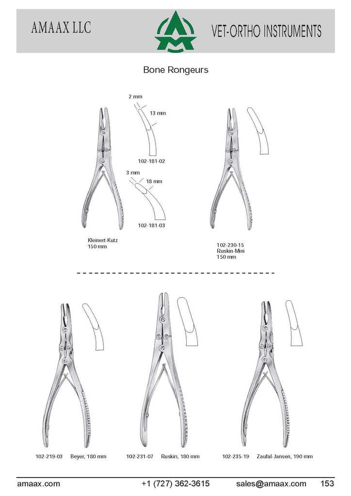 Bone Rongeurs 2mm 102-181-02 3mm 18 mm 102-181-03 Kleinert-Kutz 102-230-15 150 mm Ruskin-Mini 150 mm 13 mm 102-219-03 Beyer, 180 mm 102-231-07 Ruskin, 180 mm 102-235-19 Zaufal-Jansen, 190 mm