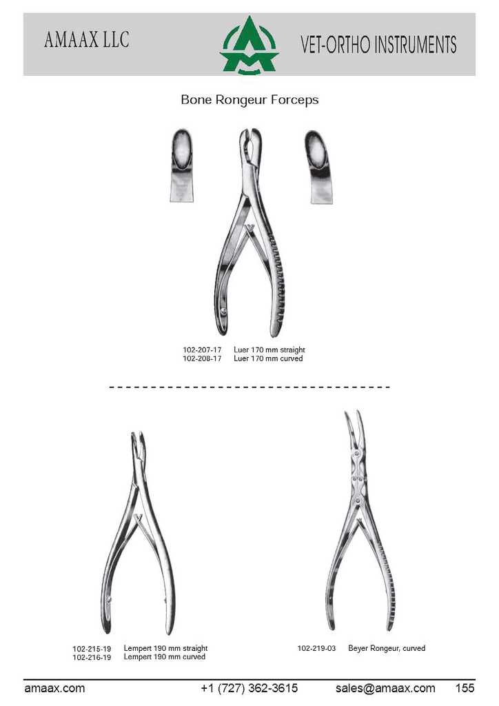 Bone Rongeur Forceps 102-207-17 Luer 170 mm straight 102-208-17 Luer 170 mm curved 102-215-19 Lempert 190 mm straight 102-219-03 Beyer Rongeur, curved 102-216-19 Lempert 190 mm curved